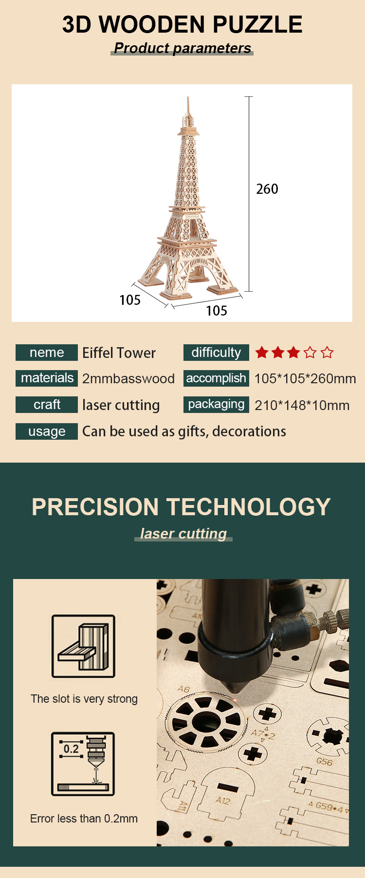 Home > Products > 3D Wooden Puzzle > 3D Wooden Puzzle Eiffel Tower