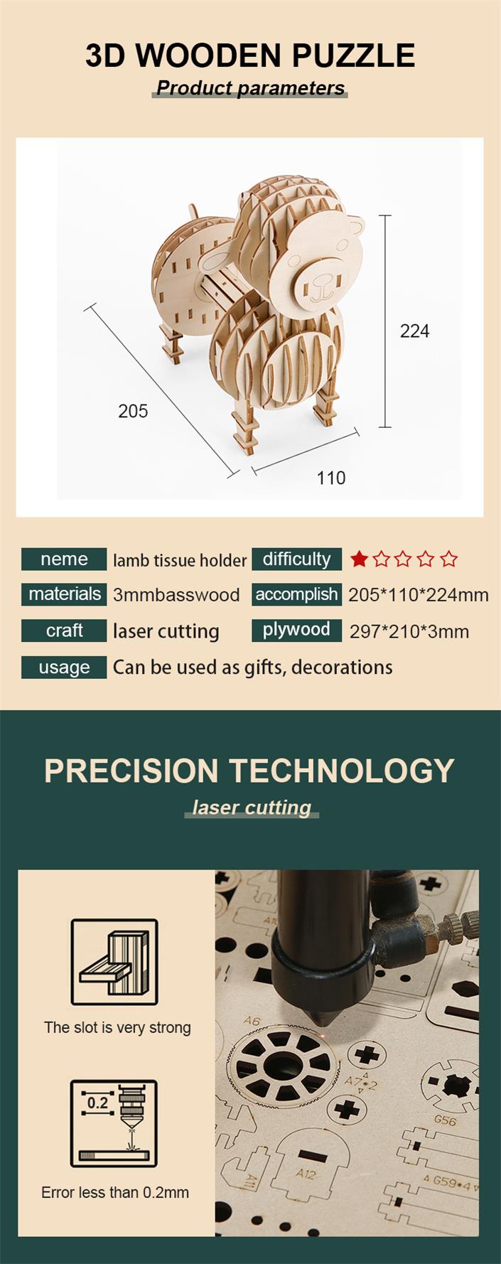 Discover the charm of the Lamb Tissue Holder DIY 3D Wooden Puzzle – a functional and decorative craft kit. Made from eco-friendly wood, this adorable lamb-shaped tissue box combines fun assembly with everyday use. Perfect for home, office, or as a thoughtful gift. Easy to assemble with no glue needed, it brings joy to kids and adults alike. A creative blend of utility and style, this puzzle turns into a cute and sturdy tissue dispenser once completed. Add a touch of whimsy to any space while enjoying the satisfaction of building it yourself!