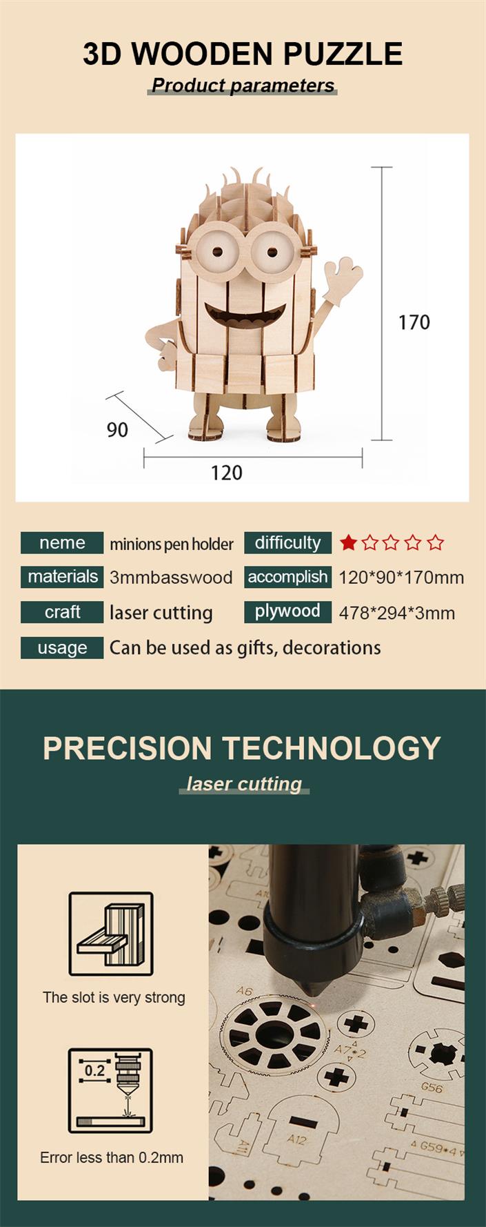 Bring fun to your workspace with the Wooden Minions Pen Holder! Crafted from eco-friendly wood, this playful desk organizer features a charming Minions design that kids and adults will love. Easy to assemble with no glue required, it’s both a creative DIY project and a practical storage solution for pens, pencils, and small tools. Perfect for desks at home, school, or the office. Add a touch of personality and keep your space tidy with this delightful handmade pen holder!