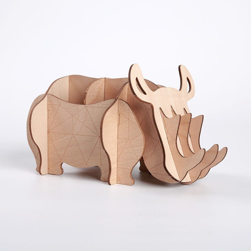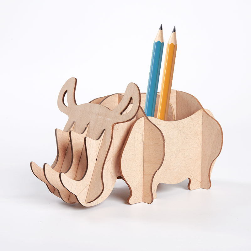 Home > Products > Animal Series > Wooden Rhinoceros Pen Holder