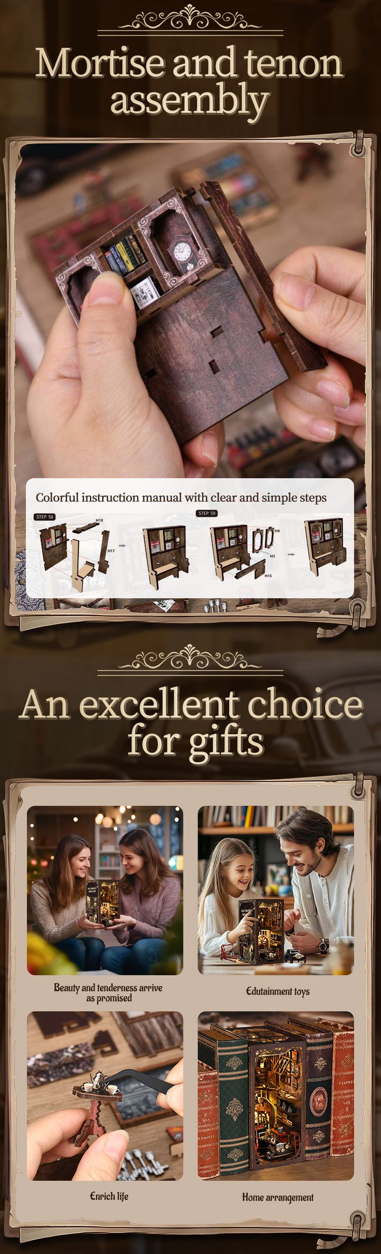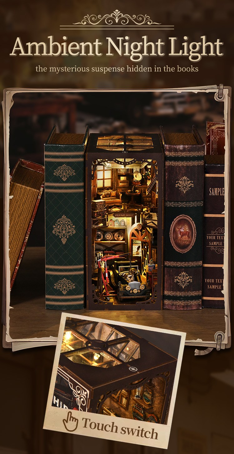 Similar to the rolife book nook kit style, this diy booknook kit features intricate interior details, vintage tools, warm lighting, and a charming repair shop ambience. Whether you are a fan of rolife miniatures, a collector of book nook themes, or a creative hobbyist, this project offers an immersive building experience and results in a beautiful decorative piece.