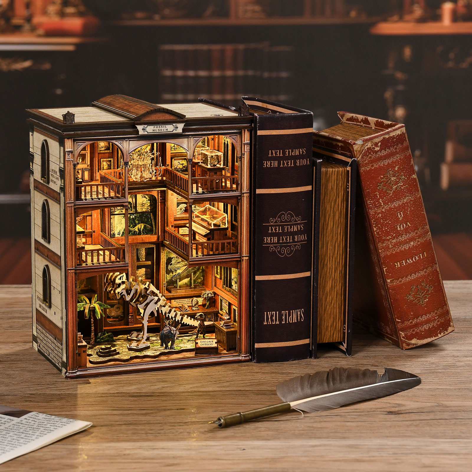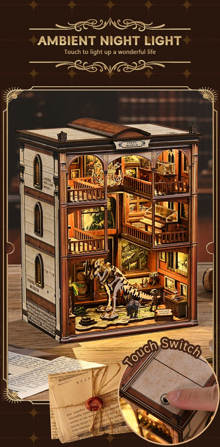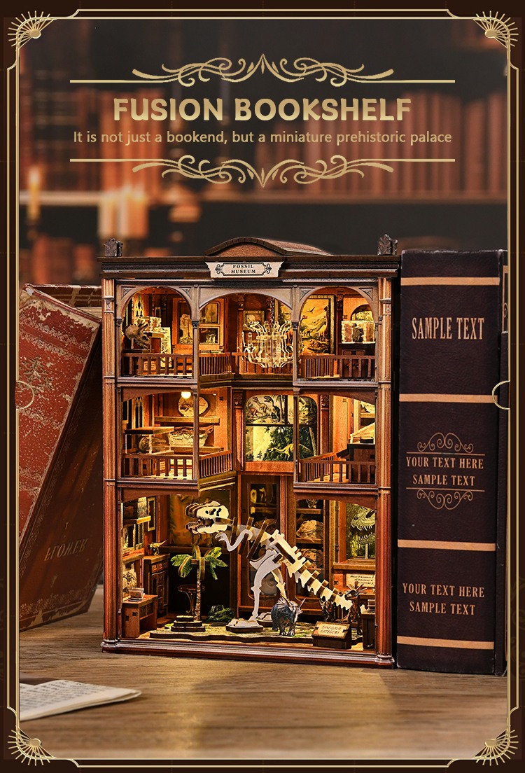 Transform your bookshelf with a spotlight book nook that doubles as a stunning display piece. The fossil museum theme fits seamlessly into any bookshelf alley, adding character and intrigue to your reading space.