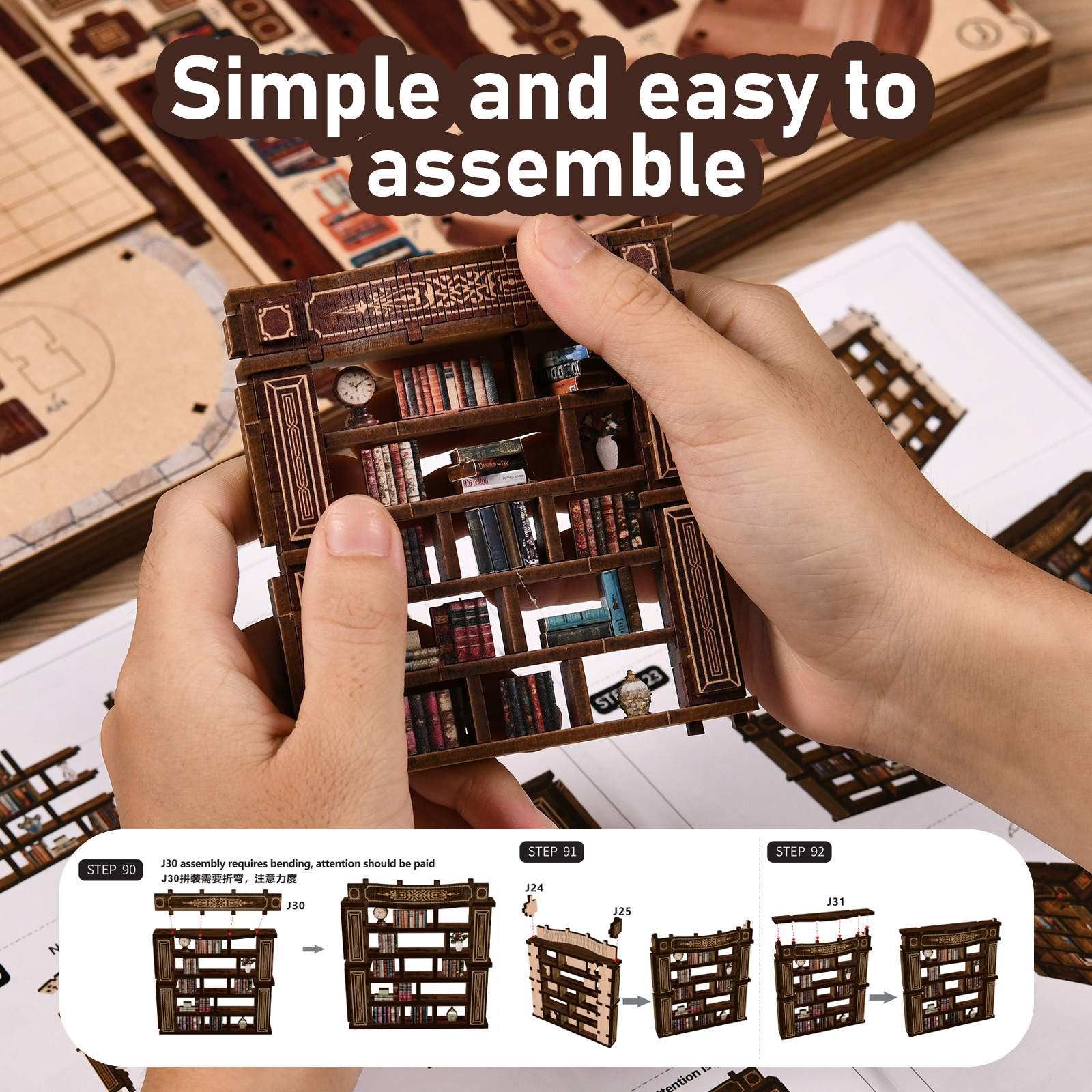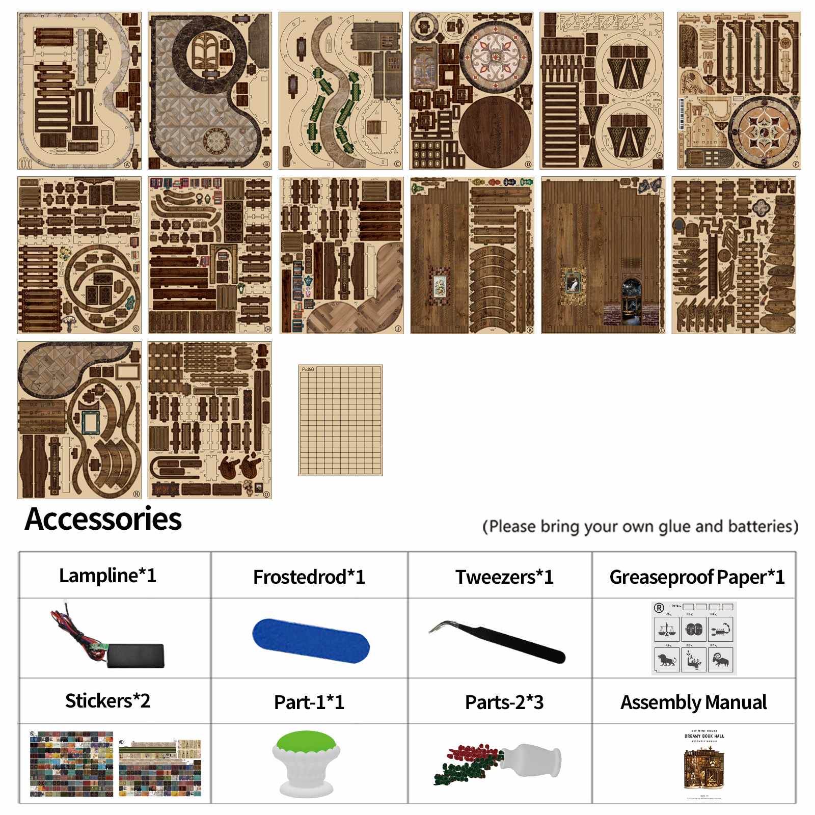Every detail— from the realistic staircase to the warm nightlight— recreates the charm of a cozy reading corner. The Dreamy Bookhall is more than a miniature mansion; it is a palace of knowledge and wonder waiting to be explored. With 888 precision-cut MDF parts, this miniature house kit offers a hands-on crafting journey that rewards patience, focus, and artistic expression.