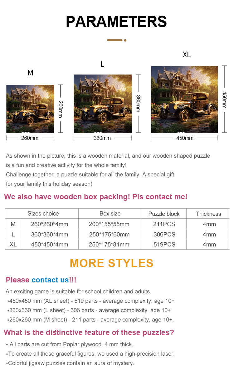 Unlike ordinary puzzles, each piece of the heteromorphic puzzle has a unique shape, allowing for both individual assembly of smaller components and a complete castle when finished. This castle puzzle is an engaging and creative activity for the whole family, suitable for school children and adults alike. It also makes a wonderful gift for holidays or special occasions, with optional wooden box packaging available—please contact us for details.